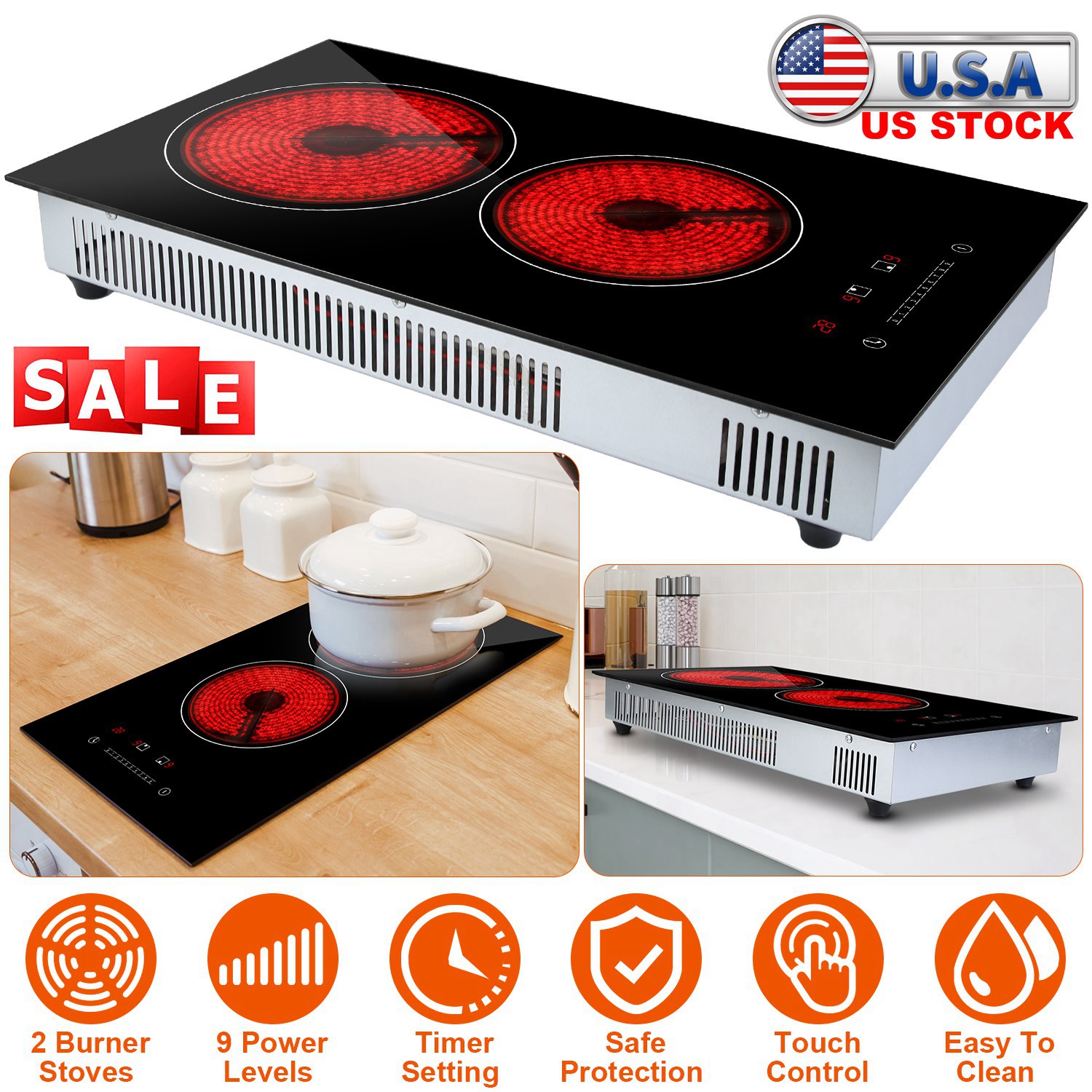 Home > Dual Induction Burners Electric Cooktop 110V Total 1900W Electric Stove Built-in Electric Ceramic Stove with Timer Setting 9 Firepower Levels Over Hea