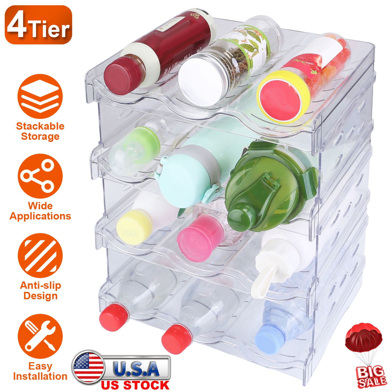 4 Tier Bottle Storage Holder 12 Bottles Transparent Stackable Bottle Organizer Standing Drink Holder Shelf for Kitchen Fridge Cabinet Pantry