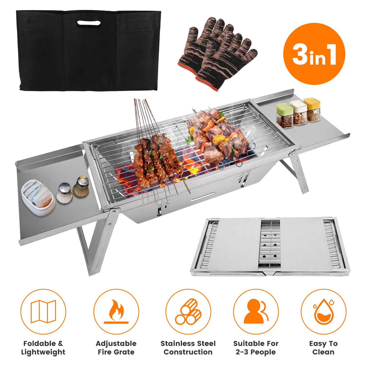 Home > 3 In 1 Foldable Charcoal Grill Fire Pit Slow Cooker 2-3 People Portable Camping Grill Stainless Steel BBQ Grill for Camping Tailgating Yard