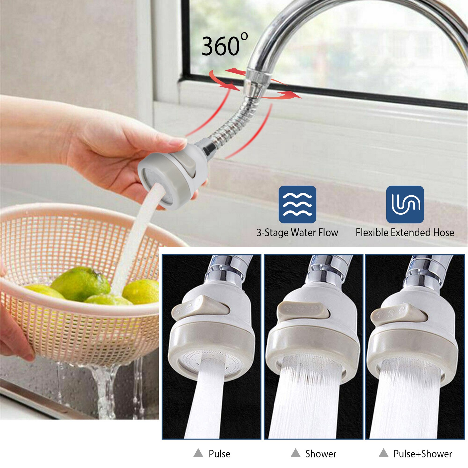 Home > Movable Kitchen Tap Head 360° Rotatable Swivel Water-Saving Faucet Anti-Splash Sink Tap Head Spray Aerator w/ Three Modes Flexible Extended Hose For H