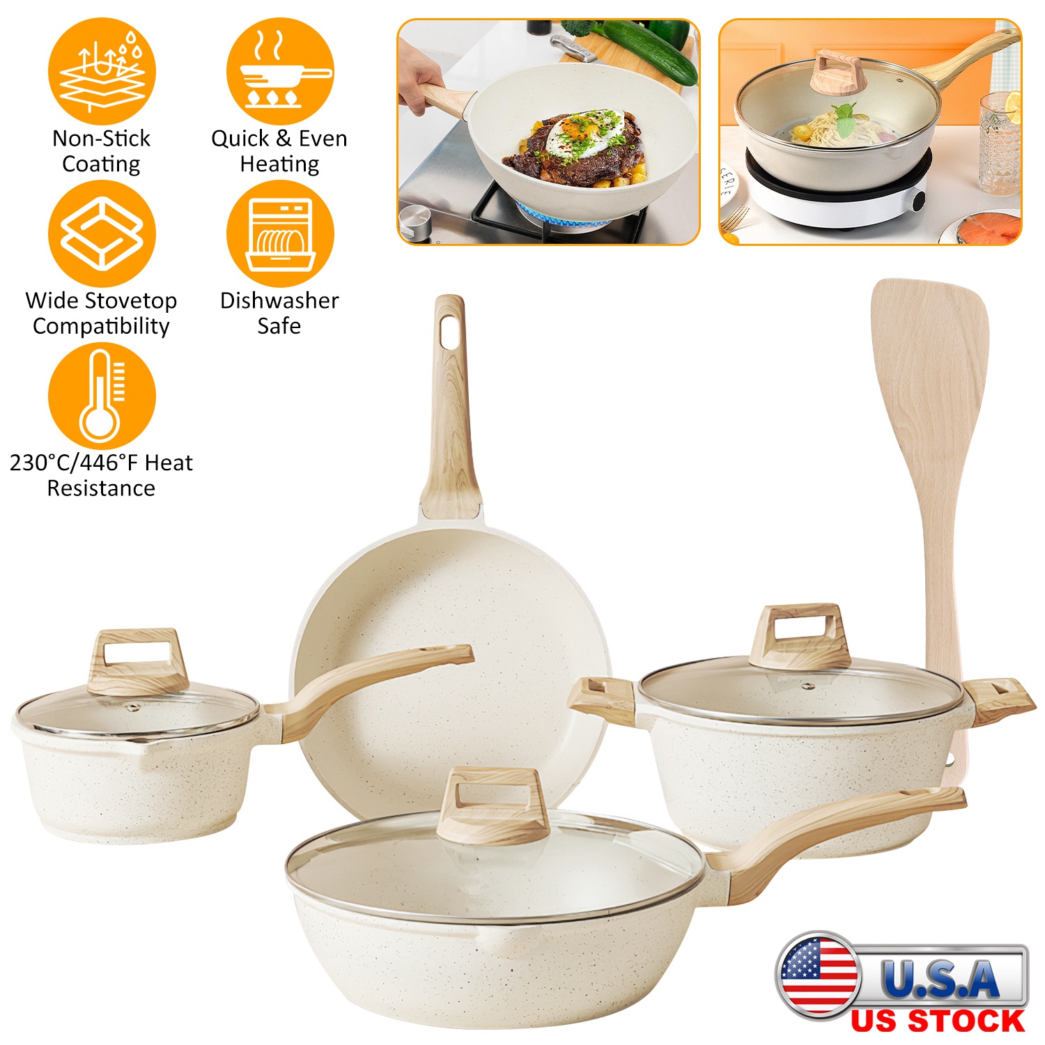 Home > Kitchen Cookware Set Pots and Pans Set White Nonstick Granite Coating Dishwasher Safe Fast Even Heat Induction Frying Pan Stockpot Sauce Pan