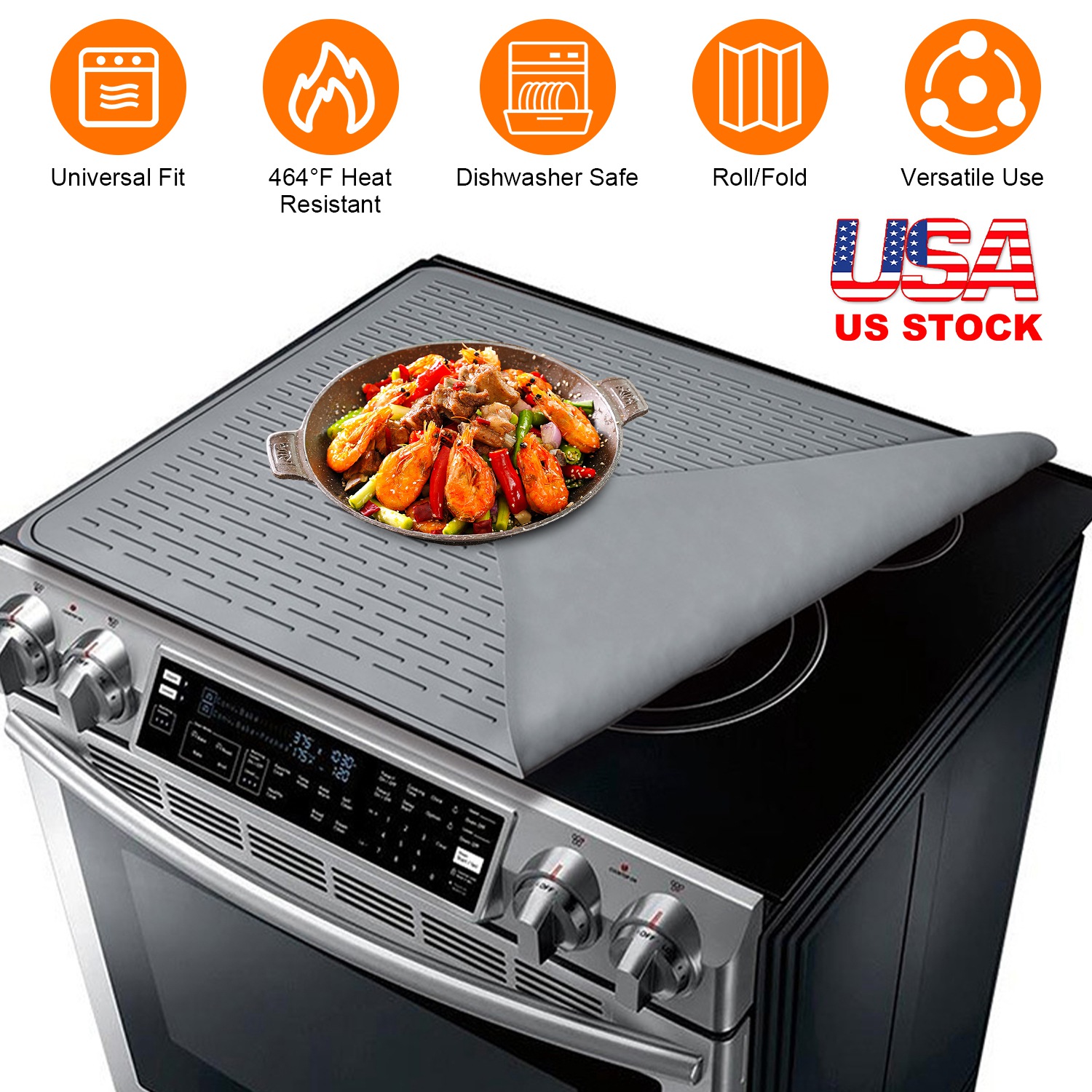 27.95x19.69in Electric Stove Cover Silicone Stove Mat Glass Stove Top Protector 464℉Heat Resistant Dishwasher Safe Waterproof