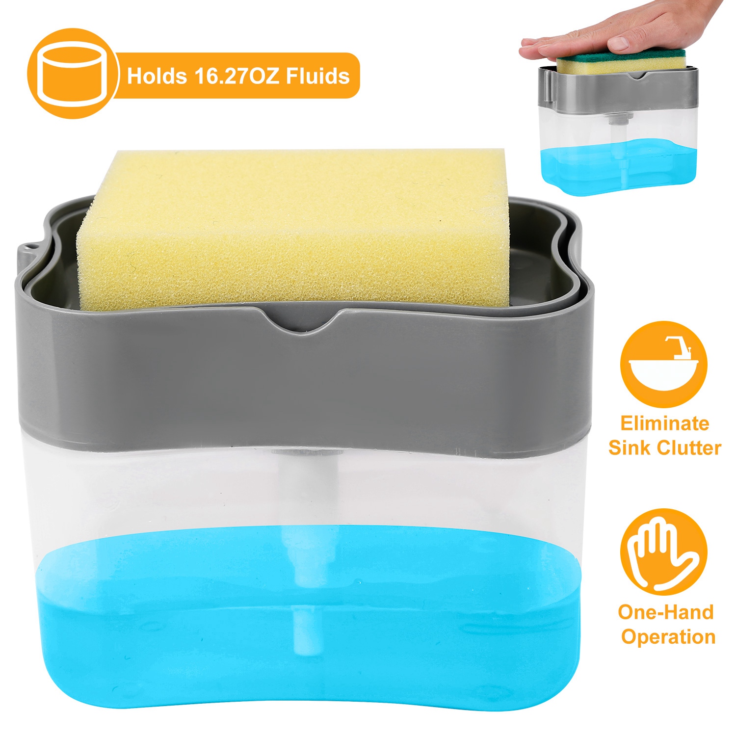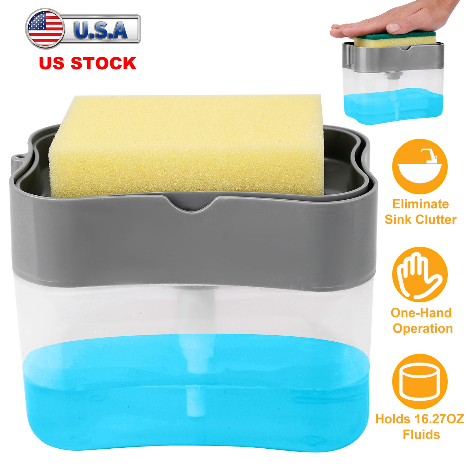 2 In 1Countertop Soap Dispenser w/Sponge Holder Dish Sink Soap Pump Container For Kitchen Bathroom Washroom